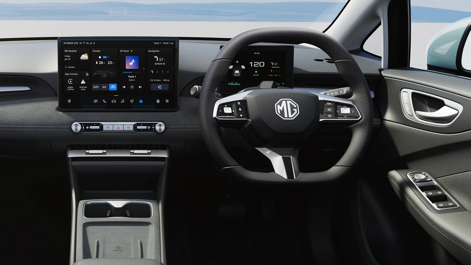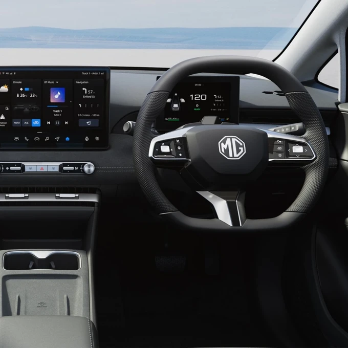 Cables are annoying. The MG4 EV Urban quietly removed them all. Wireless Apple CarplayTM and Android AutoTM sync with your phone the moment you get in whilst wireless charging* keeps it topped up. Online apps* like Spotify, YouTube, TikTok, and Amazon Music are seamlessly integrated and ready to go which means no fumbling for cables in the dark. Just seamless connection that works with your flow.