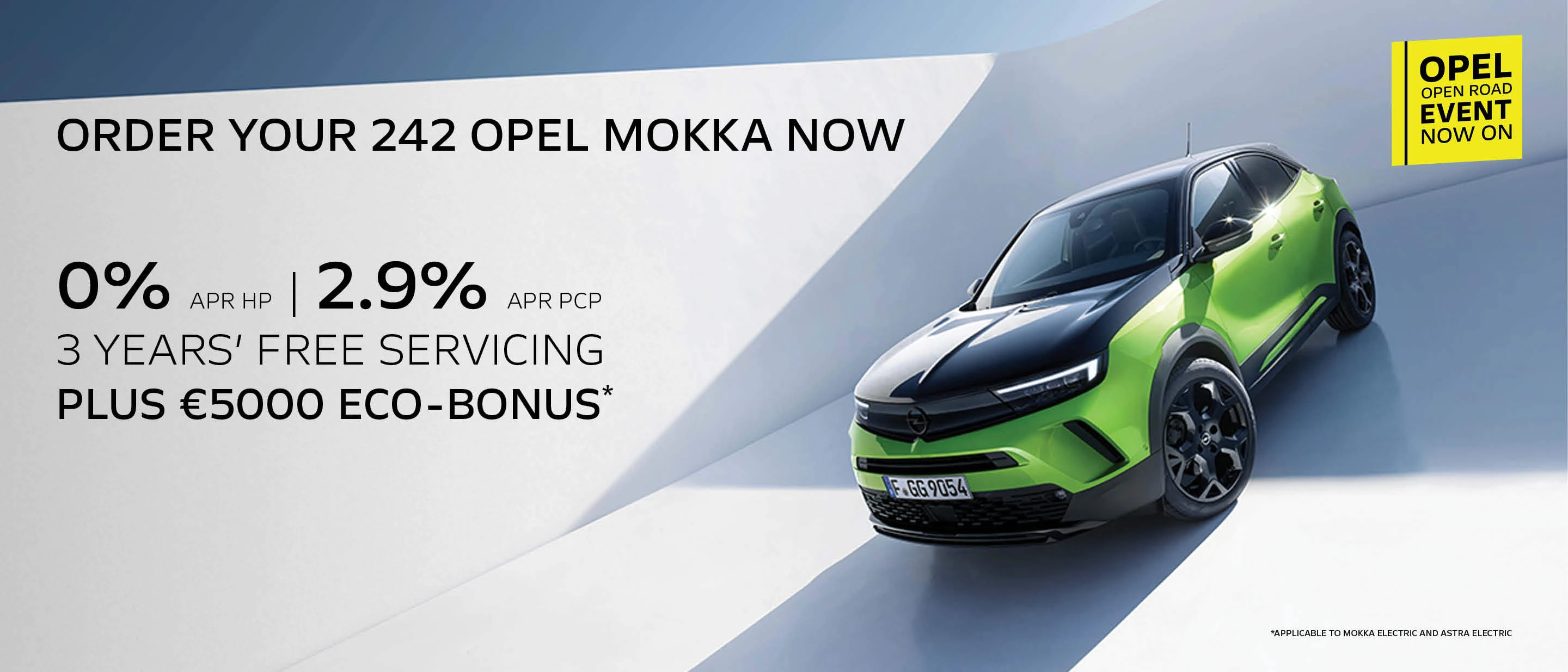 Nothing to see here. And by nothing, we mean 0% APR finance. All next week we're offering 0% finance and 3 years of free servicing on any new car ordered, plus get a fantastic €5,000 eco bonus if you choose to go electric on Mokka or Astra.
