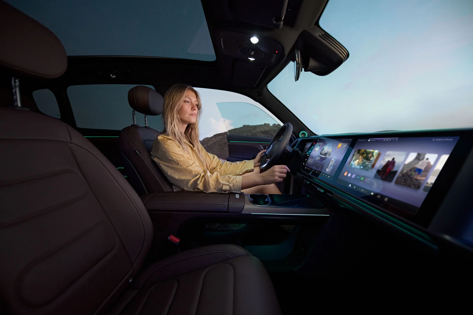 For a smooth response time, the vehicle utilizes the power of the advanced AMD V2000 high-computing-power chip. The processor excels at rendering the vehicle's low-poly smart OS user interface, which is based on the Unreal engine and manages real-time effects that are critical for a responsive, smooth and aesthetically pleasing experience. The result is an integrated system that combines superior computing power with contemporary design, offering the user an intelligent and interactive experience that epitomizes the new model's fusion of premium comfort and technology.