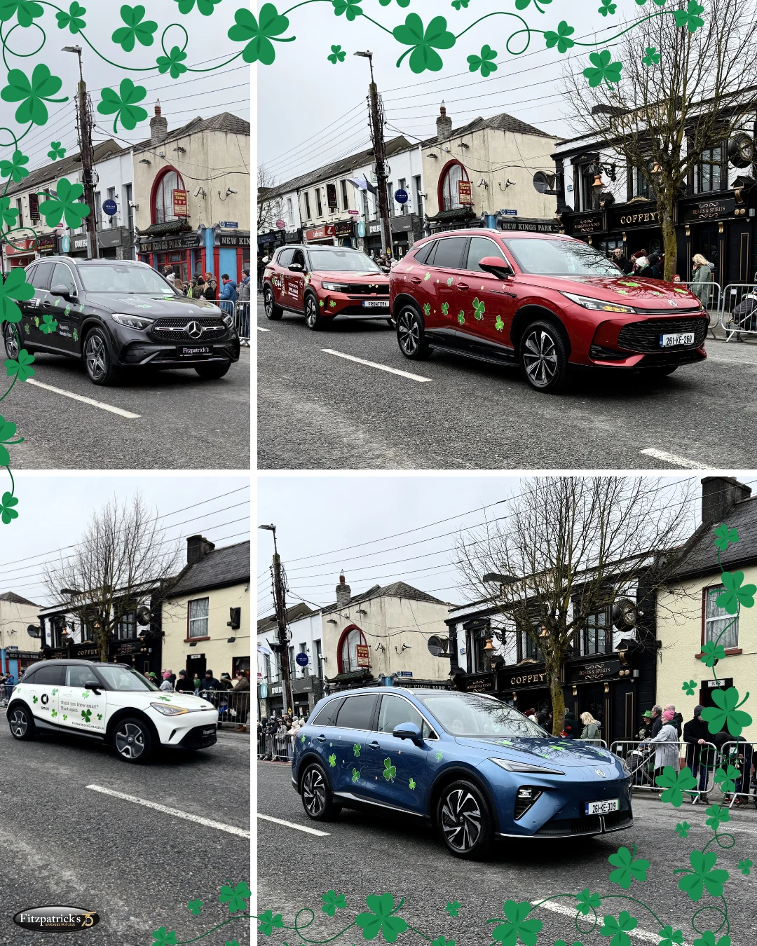 We showcased a selection of our vehicles from our showrooms in Kildare, including Mercedes Benz, MG, Opel & Smart, all decorated in festive green shamrocks for the day that was in it!